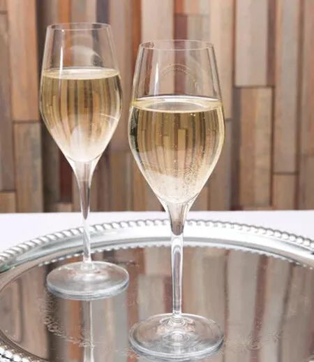 起泡酒最大的特点在于其气泡,因此一直以来许多人都选择细长的笛形杯(Flute)来享用起泡酒,这种酒杯有三大特点,分别是长梗、小杯口和窄杯身。长梗能避免手的温度加热酒液,小杯口可以减少酒液与空气的接触面积,使气泡不至于消逝得太快,而窄长的杯身则可以让你观察到起泡酒中的气泡冉冉升起的浪漫过程。